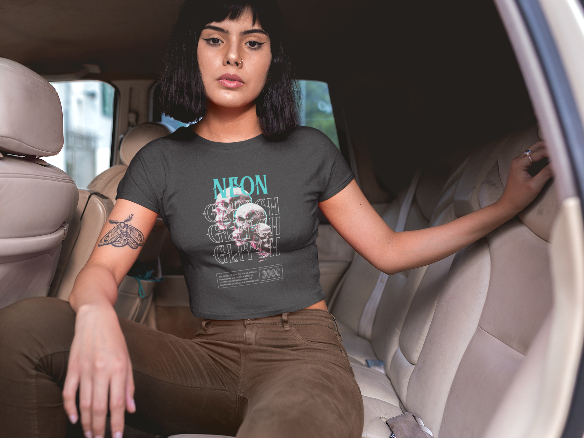 Neon Glitch, a cyberpunk tee that brings the chaos of a digital breakdown to life.